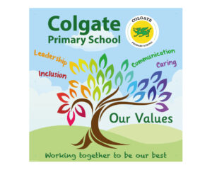 Welcome to Colgate Primary school. We are pleased to share our school with you. If you don’t find the information you need, please call and/or arrange a visit so you can see the school in action. We have a strong team approach to running our school and this very much involves the children. We believe that everyone can reach their best when they are happy, settled and engaged. This is what we strive for. Our values are Leadership, Inclusion, Caring and Communication. We hope that through our website and when you visit, you will see and feel these values in action around you.